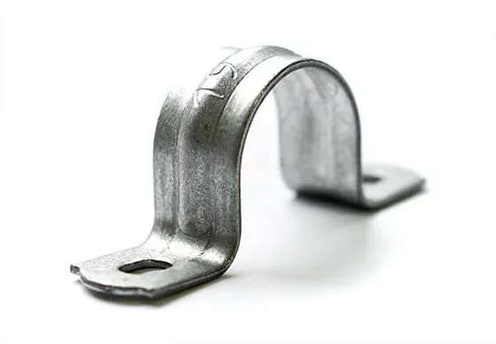 Для более надежного закрепления используют двухлапковые скобы с монтажными отверстиями (СМО). Представляет собой изогнутую определенным образом (в виде буквы «П» или дугой) полоску.. Основное отличие от однолапковой скобы это две точки фиксации, надежность присоединения достигается за счет достаточной большой площади, охватываемой скобой, по сравнению с другими видами крепежа.