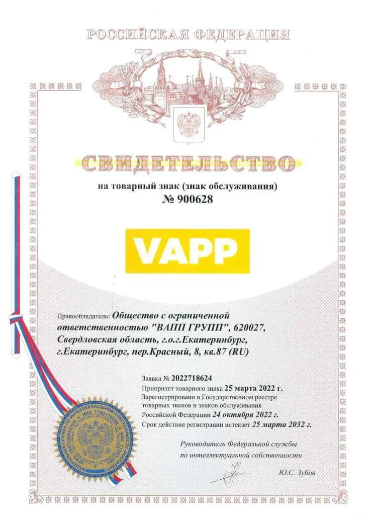 Сертификат торговой марки VAPP